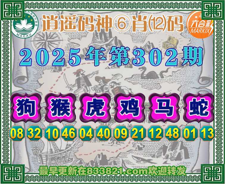 302期:《逍遥码神》 🏄♀️⑥肖⑿码🏄♀️【狗猴虎鸡马蛇】开:猴22准