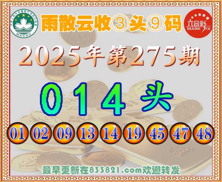 275期:『雨散云收』 🕯③头⑨码🕯【014头】开:鸡45准