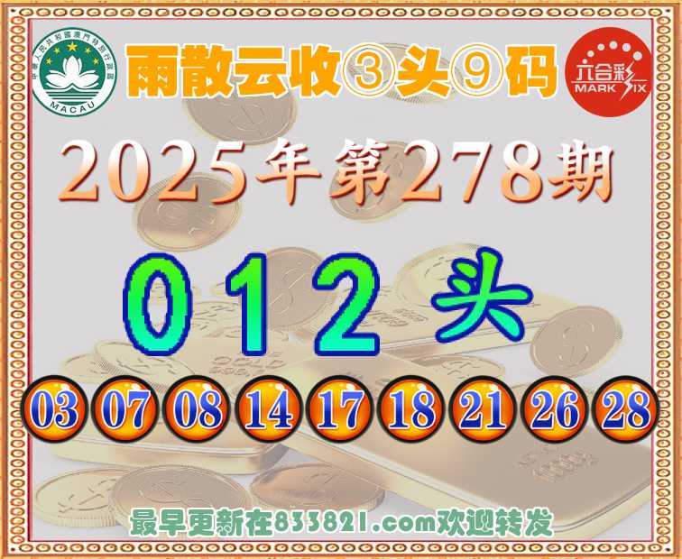 278期:『雨散云收』 🕯③头⑨码🕯【012头】开:虎28准