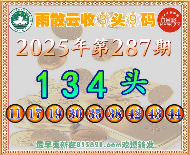 287期:『雨散云收』 🕯③头⑨码🕯【134头】开:猴34准