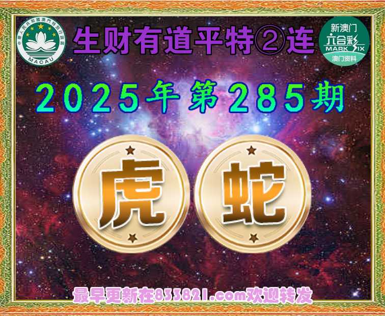 285期:【生财有道】 🎯平特②连🎯【虎蛇】开:虎28,蛇25准
