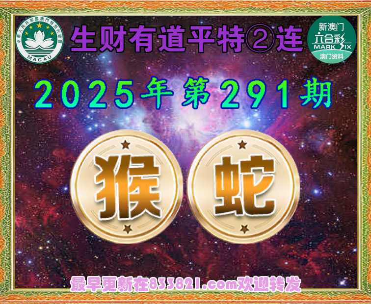 291期:【生财有道】 🎯平特②连🎯【猴蛇】开:00准