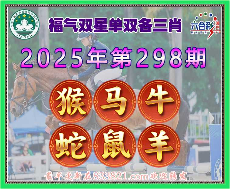 298期: 福气双星 🎉单双各三肖🎉【猴.马.牛.蛇.鼠.羊】开:羊23准