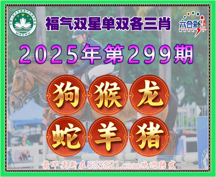 299期: 福气双星 🎉单双各三肖🎉【狗.猴.龙.蛇.羊.猪】开:蛇49准