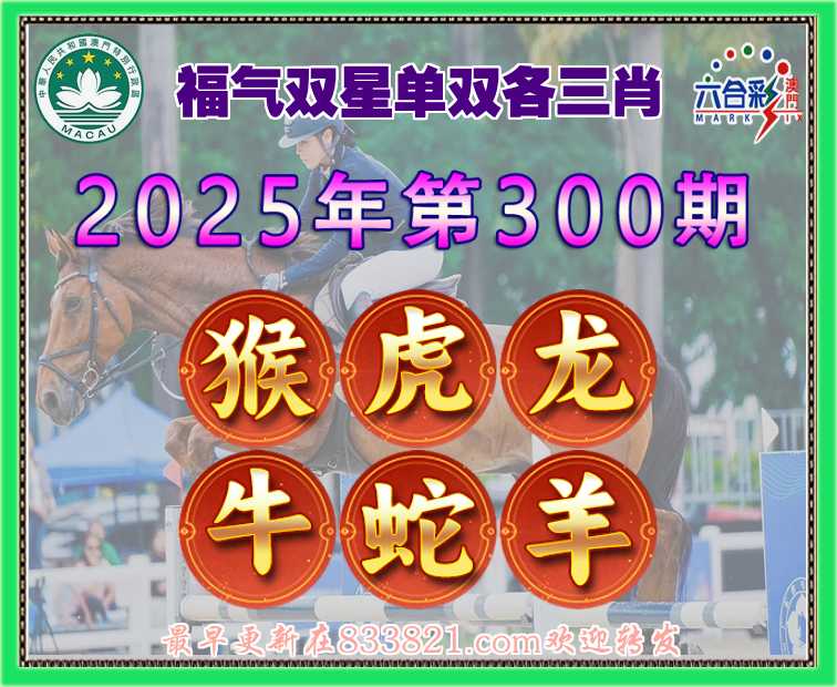 300期: 福气双星 🎉单双各三肖🎉【猴.虎.龙.牛.蛇.羊】开:虎40准