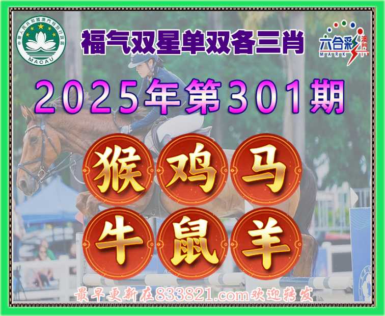 301期: 福气双星 🎉单双各三肖🎉【猴.鸡.马.牛.鼠.羊】开:牛05准