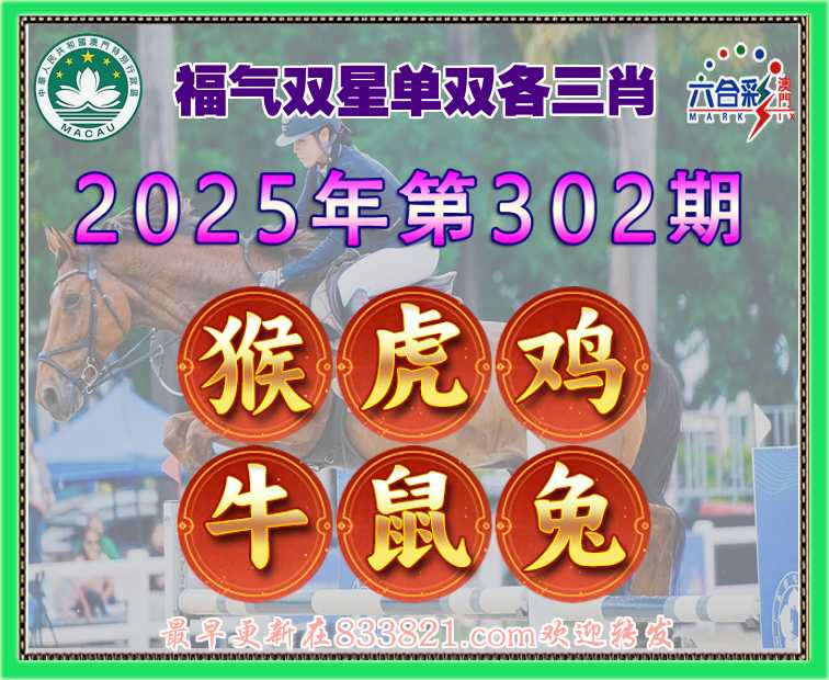 302期: 福气双星 🎉单双各三肖🎉【猴.虎.鸡.牛.鼠.兔】开:猴22准