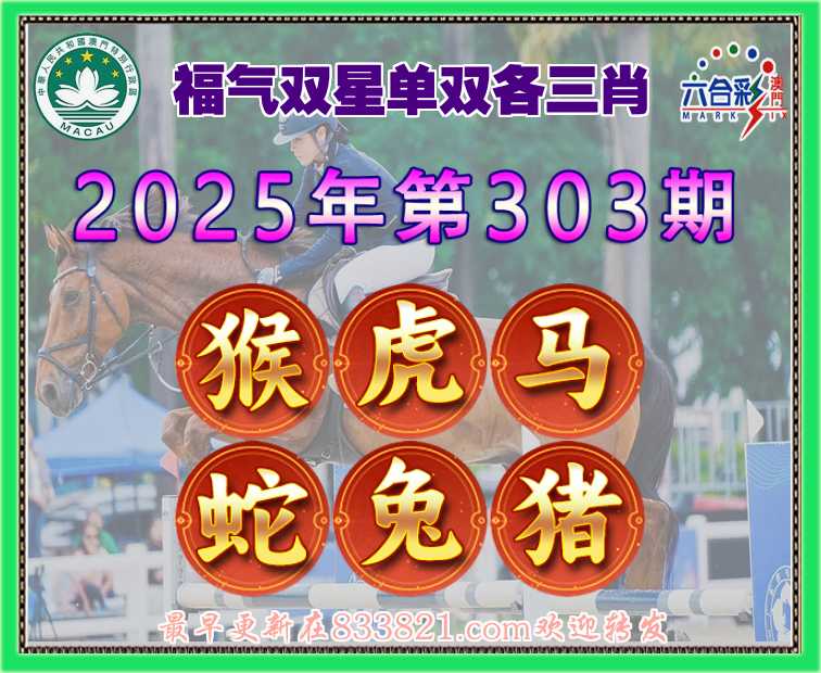 303期: 福气双星 🎉单双各三肖🎉【猴.虎.马.蛇.兔.猪】开:兔15准