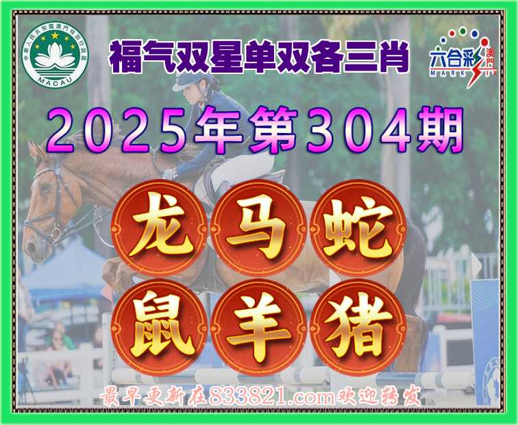 304期: 福气双星 🎉单双各三肖🎉【龙.马.蛇.鼠.羊.猪】开:马48准