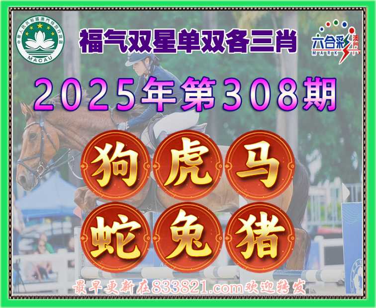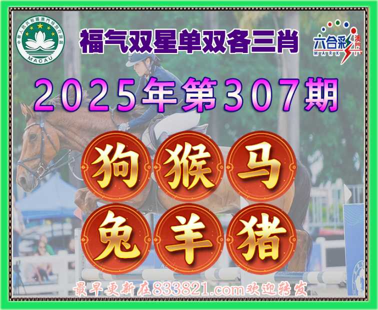 307期: 福气双星 🎉单双各三肖🎉【狗.猴.马.兔.羊.猪】开:狗20准
