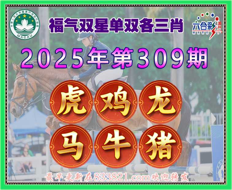 309期: 福气双星 🎉单双各三肖🎉【虎.鸡.龙.马.牛.猪】开:00准