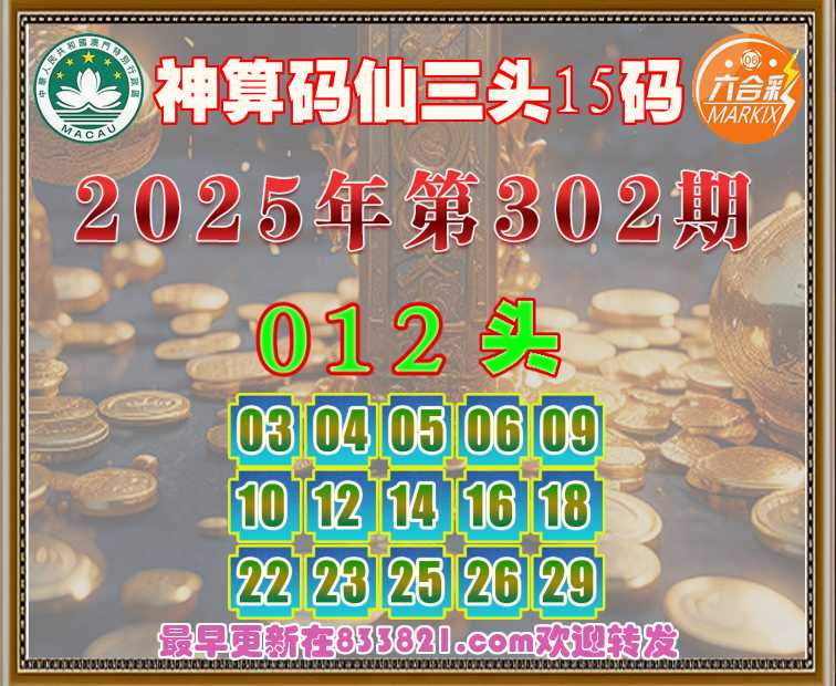 303期:〖神算码仙〗 🥉三头15码🥉【012头】开:15准
