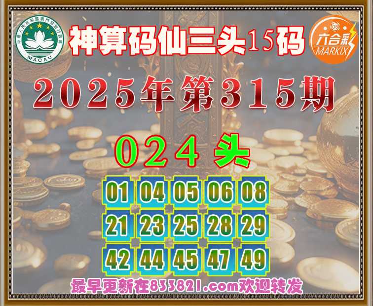 315期:〖神算码仙〗 🥉三头15码🥉【024头】开:04准