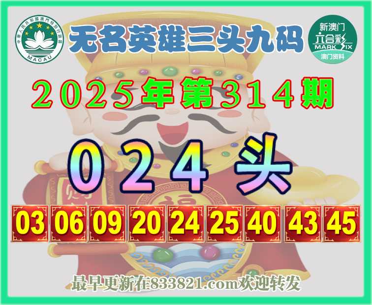 314期:『无名英雄』 🎈三头九码🎈【024头】开:羊23准