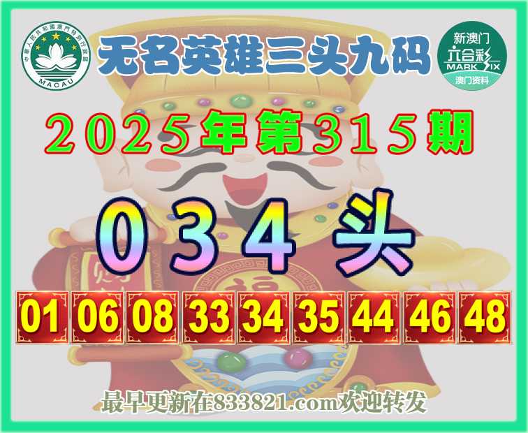 315期:『无名英雄』 🎈三头九码🎈【034头】开:虎04准