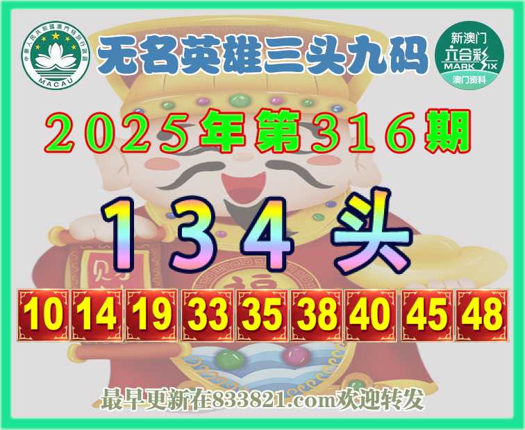 316期:『无名英雄』 🎈三头九码🎈【134头】开:00准