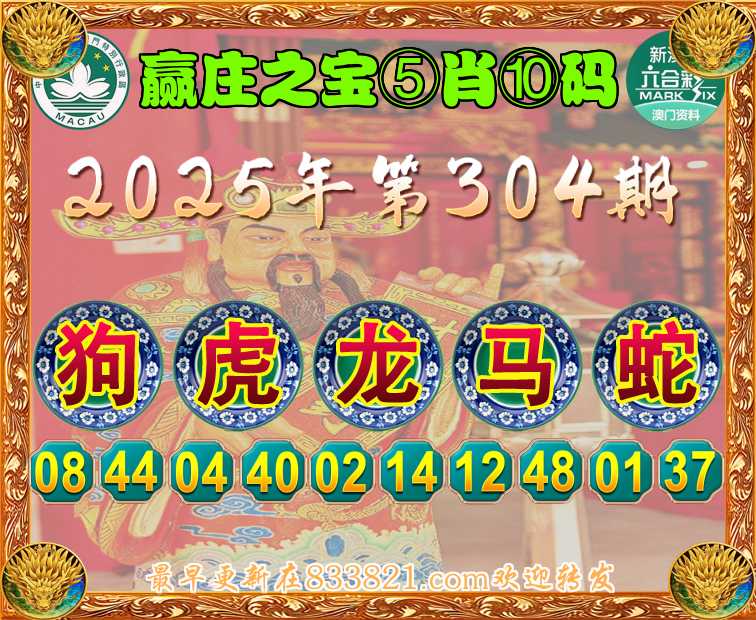 304期:【赢庄之宝】 ⚽⑤肖⑩码⚽【狗虎龙马蛇】开:马48准