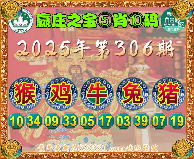 306期:【赢庄之宝】 ⚽⑤肖⑩码⚽【猴鸡牛兔猪】开:牛17准