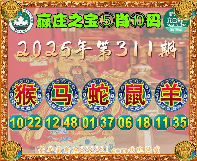 311期:【赢庄之宝】 ⚽⑤肖⑩码⚽【猴马蛇鼠羊】开:蛇37准