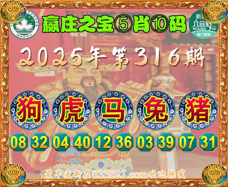 316期:【赢庄之宝】 ⚽⑤肖⑩码⚽【狗虎马兔猪】开:00准