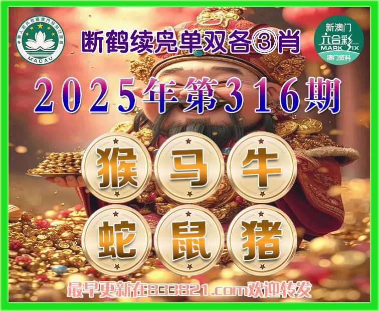 316期:〖断鹤续凫〗 🌅单双各③肖🌅【猴.马.牛.蛇.鼠.猪】开:马24准