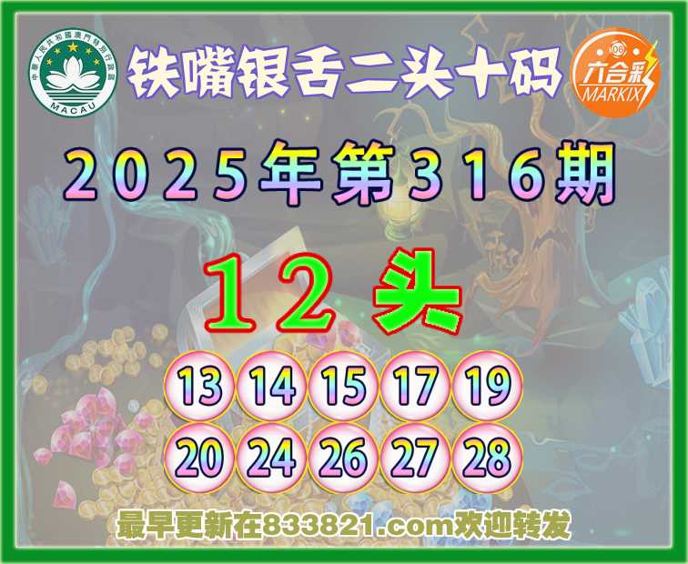 316期:《铁嘴银舌》 📙二头十码📙【12头】开:24准