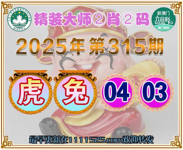 315期:【精装大师】 ♦️②肖②码♦️【虎兔】【04.03】开:虎04准