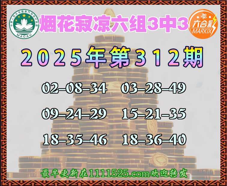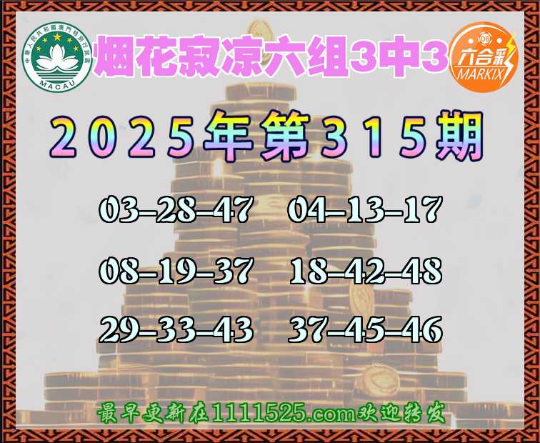 315期:『烟花寂凉』 🍕六组3中3🍕