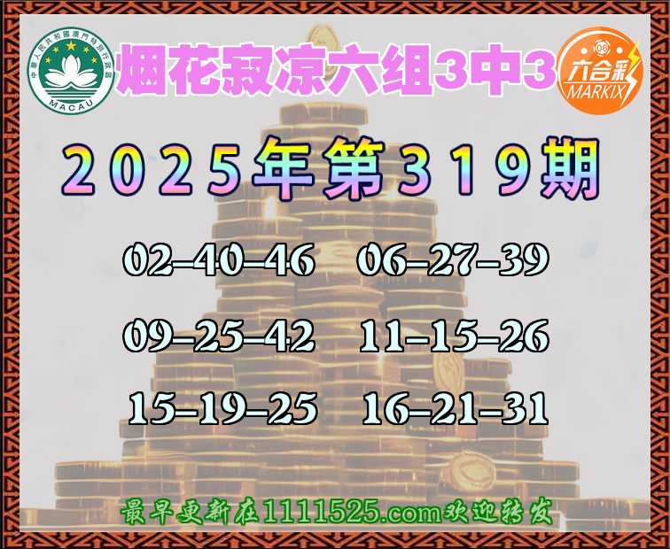 319期:『烟花寂凉』 🍕六组3中3🍕
