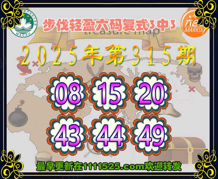 315期:【步伐轻盈】 🤘六码复式3中3🤘