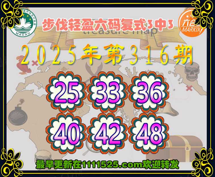 316期:【步伐轻盈】 🤘六码复式3中3🤘