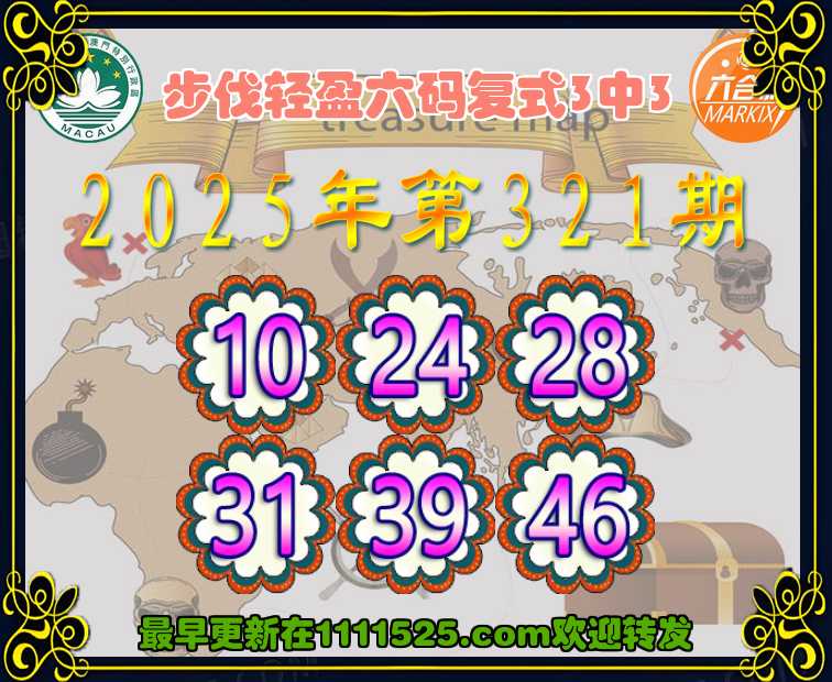 321期:【步伐轻盈】 🤘六码复式3中3🤘