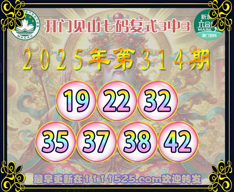 314期:『开门见山』 👈七码复式3中3👈