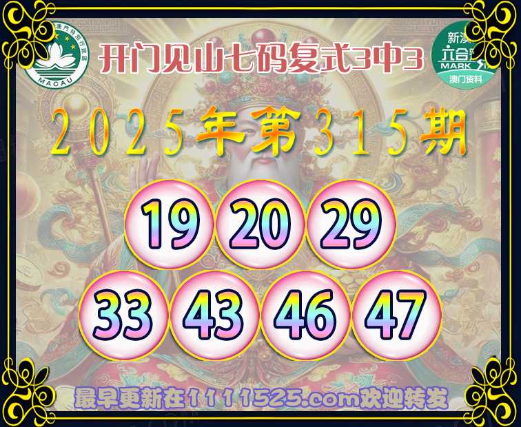 315期:『开门见山』 👈七码复式3中3👈