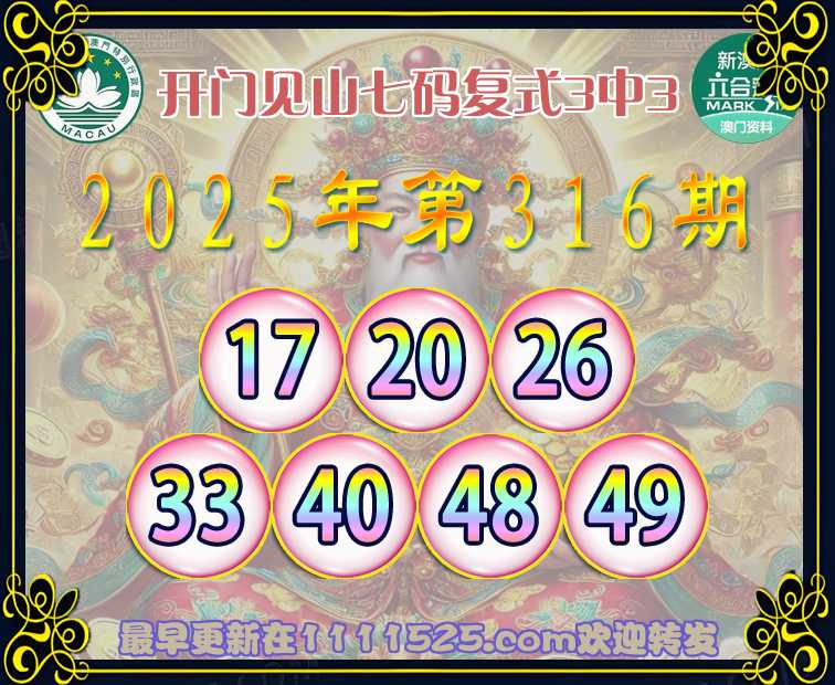 316期:『开门见山』 👈七码复式3中3👈