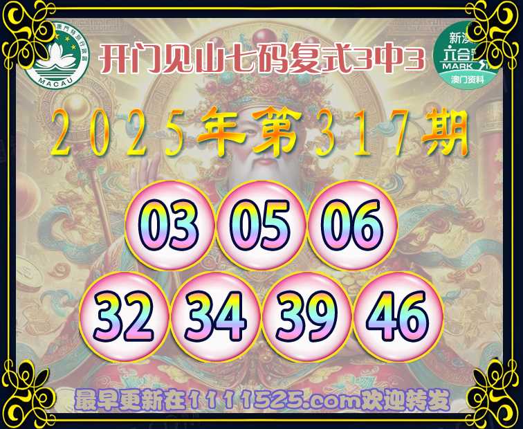 317期:『开门见山』 👈七码复式3中3👈