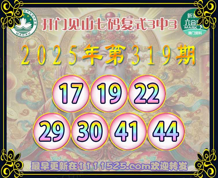319期:『开门见山』 👈七码复式3中3👈