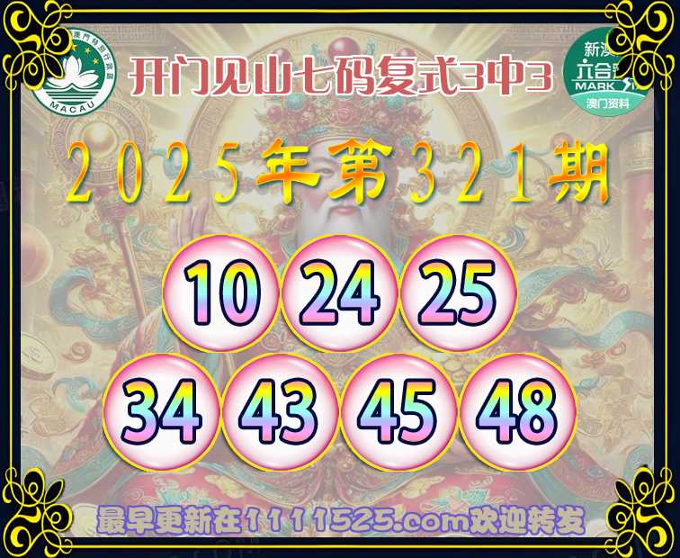 321期:『开门见山』 👈七码复式3中3👈