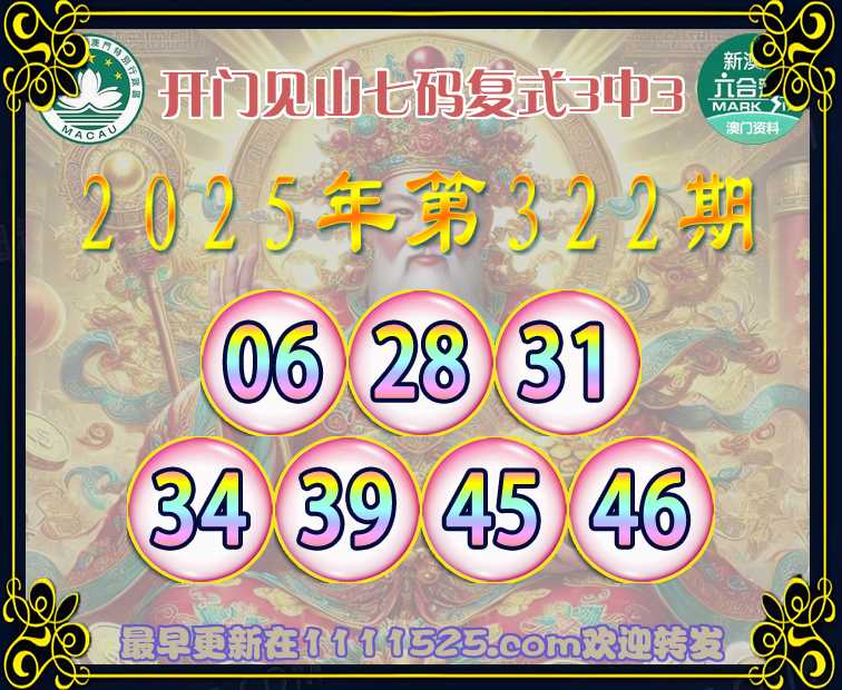 322期:『开门见山』 👈七码复式3中3👈