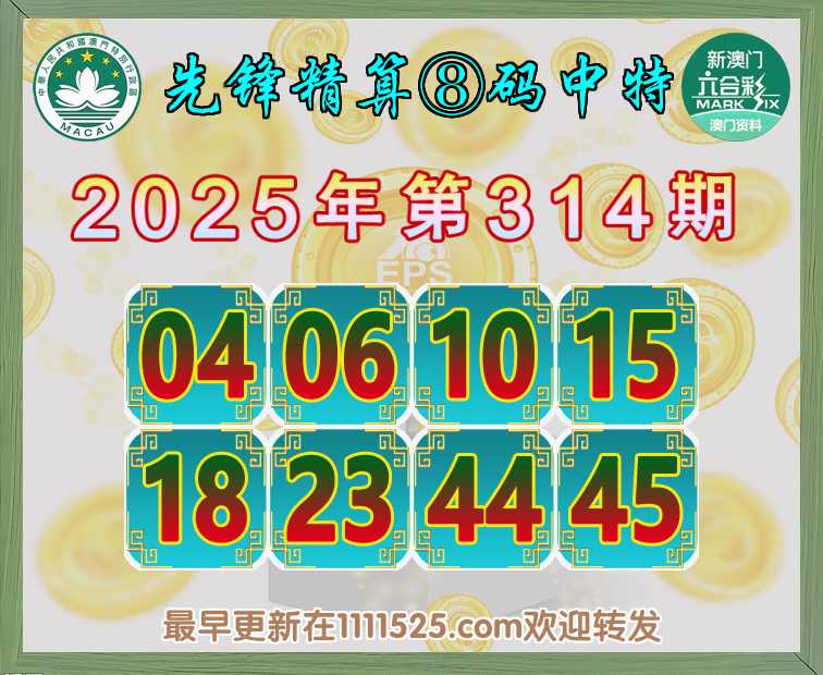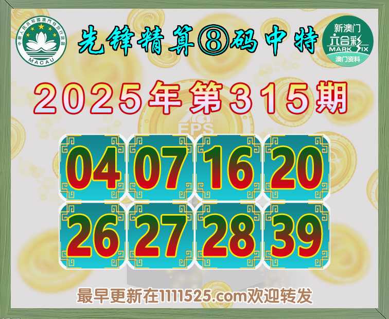 315期: 先锋精算 ♣️⑧码中特♣️开:04准