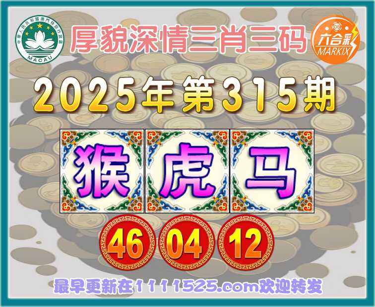 315期:〖厚貌深情〗 🚣三肖三码🚣【猴虎马】【46.04.12】开:虎04准