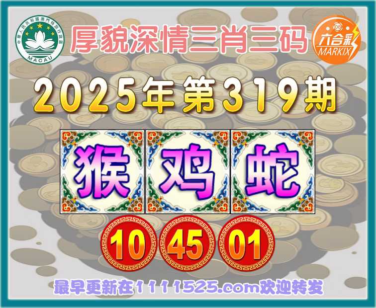 319期:〖厚貌深情〗 🚣三肖三码🚣【猴鸡蛇】【10.45.01】开:鸡45准