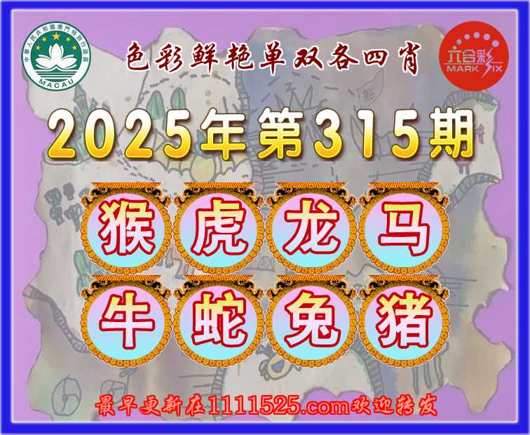 315期: 🧩『色彩鲜艳』 🧩单双各四肖🧩开:虎04准