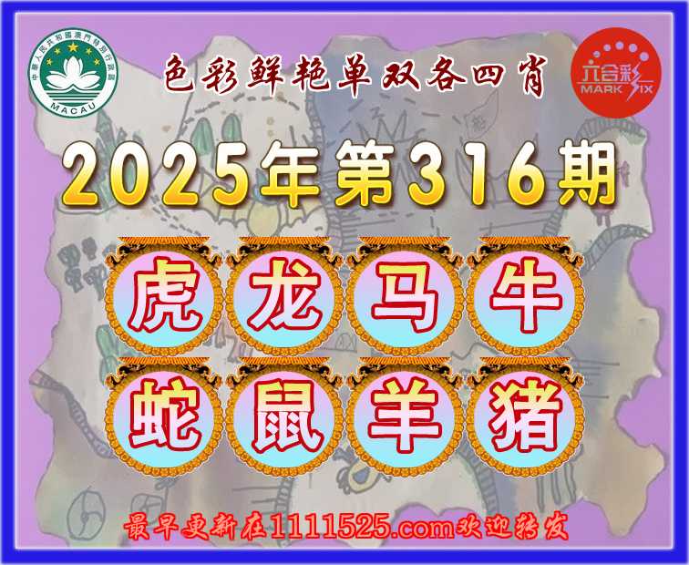 316期: 🧩『色彩鲜艳』 🧩单双各四肖🧩开:马24准