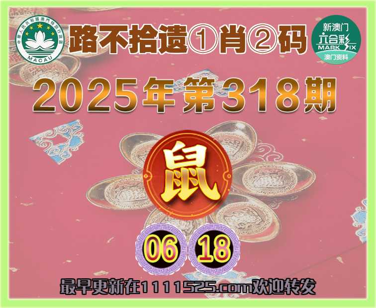 318期:【路不拾遗】 🀄①肖②码🀄【鼠】【06.18】开:鼠06准
