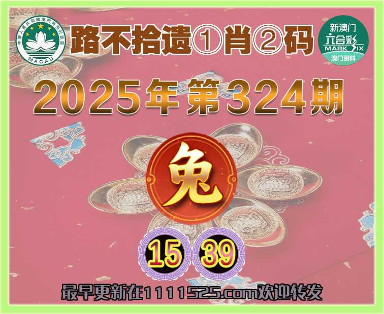 324期:【路不拾遗】 🀄①肖②码🀄【兔】【15.39】开:兔15准