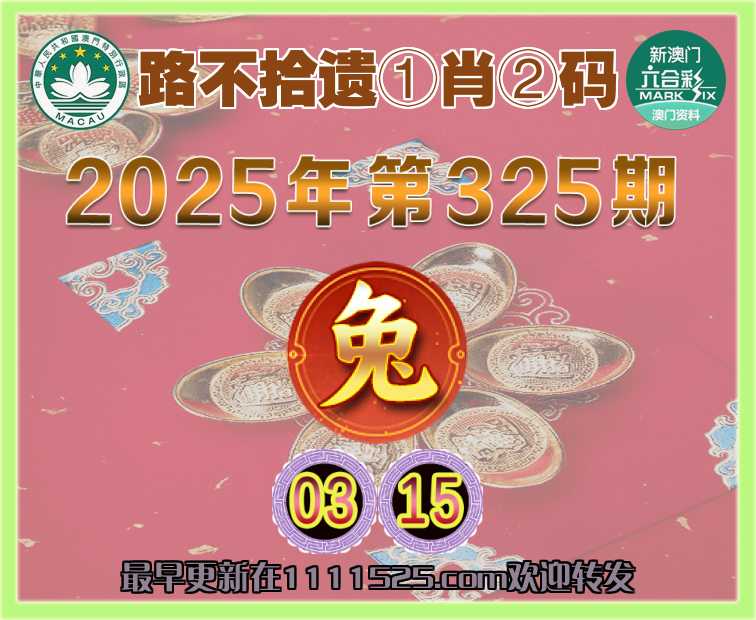 325期:【路不拾遗】 🀄①肖②码🀄【兔】【03.15】开:00准