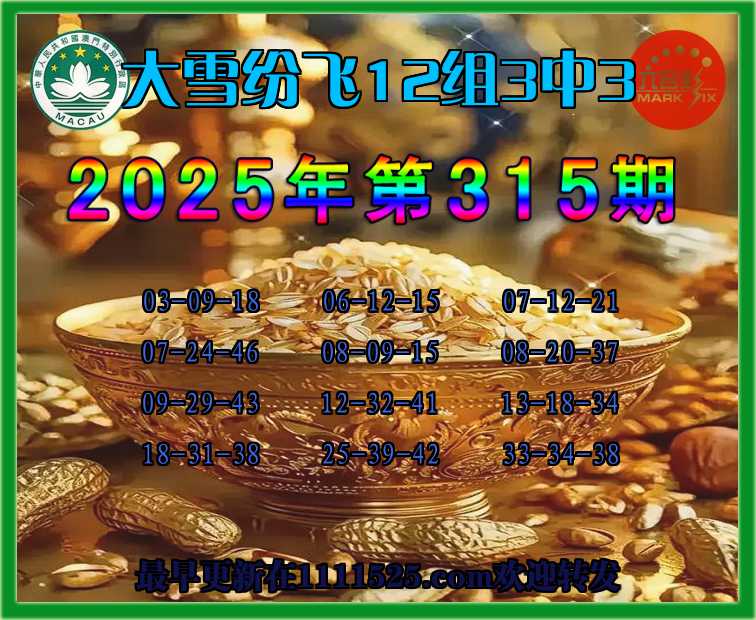 317期:『大雪纷飞』 🍄12组3中3🍄