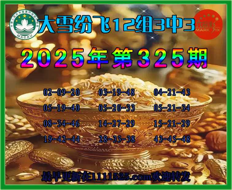 325期:『大雪纷飞』 🍄12组3中3🍄