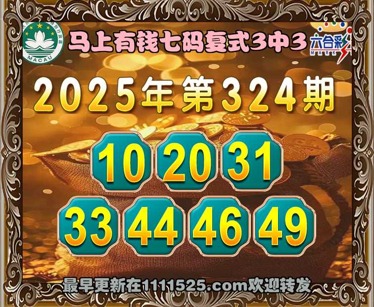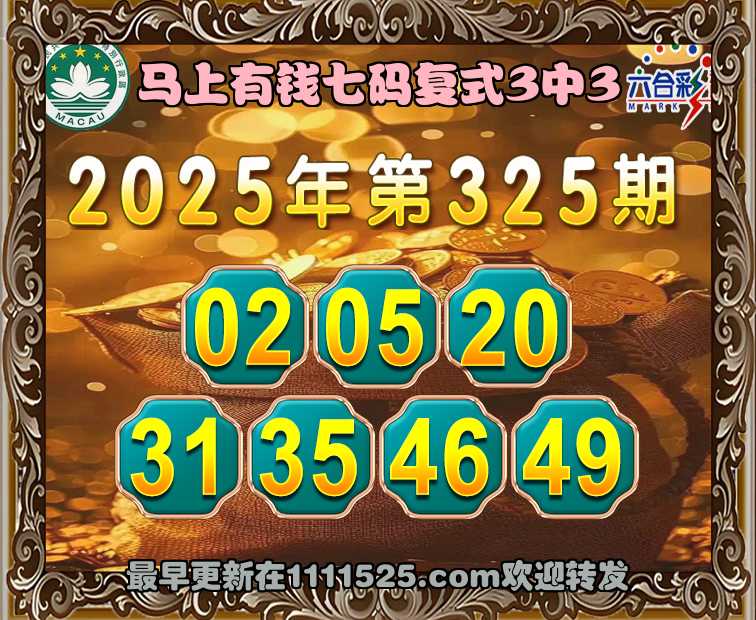 325期:『马上有钱』 🥉七码复式3中3🥉